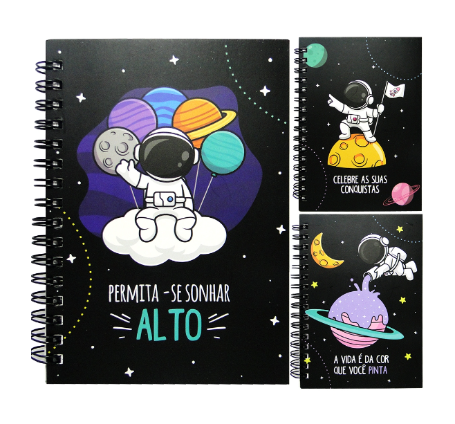 Caderno / Bloco de Anotação Espiral Astronauta Sortidas 80 Folhas 21,5x 15 cm