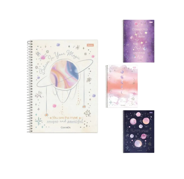 O Caderno Espiral Capa Dura Universitário 1 Matéria Cosmos 80 Folhas possui capa dura com a parte interna decorada, bolsa plástica transparente para guardar trabalhos e anotações, folha com adesivos funcionais, folhas pautadas decoradas e espiral colorido. Ideal para o dia a dia na escola ou na faculdade.