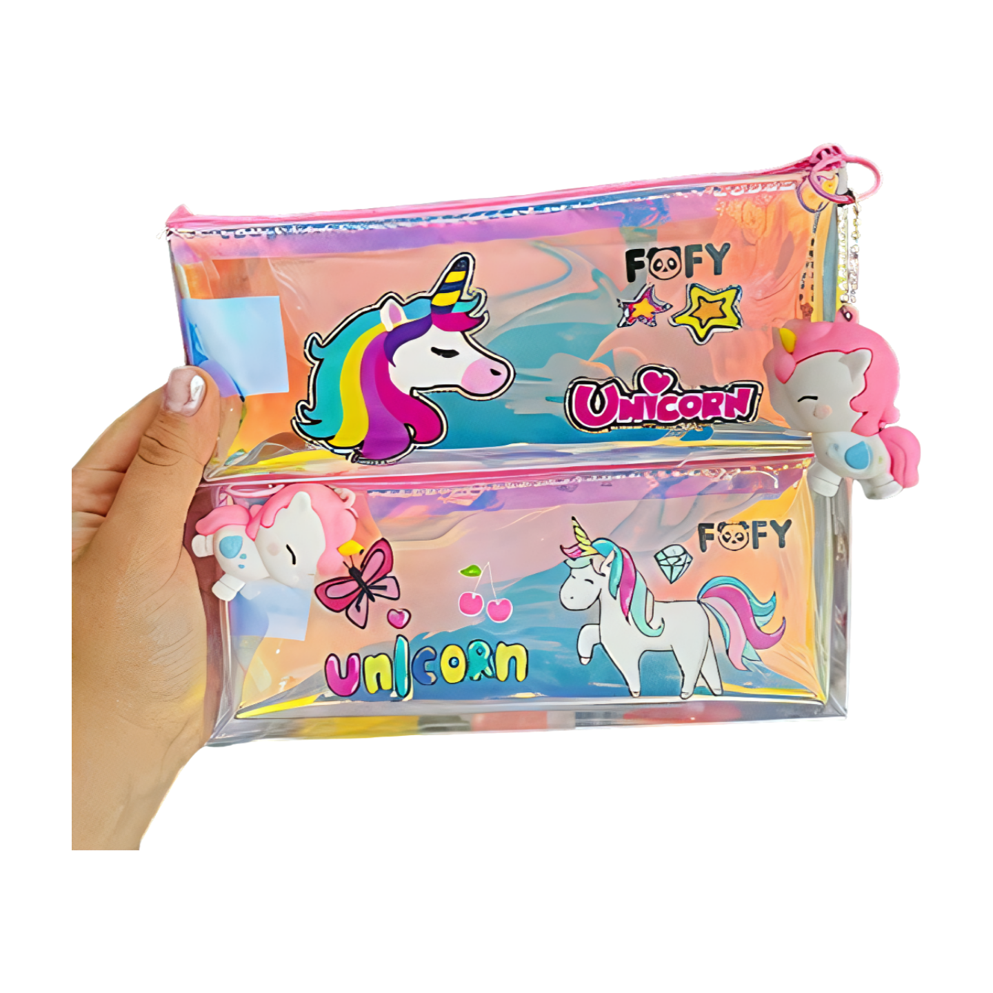 Transforme sua rotina escolar com o Estojo Escolar Unicórnio Holográfico da FOFY! Este estojo encantador combina um design mágico com um toque de brilho holográfico e vem acompanhado de um chaveiro fofo, perfeito para quem adora itens que são tanto funcionais quanto estilosos.