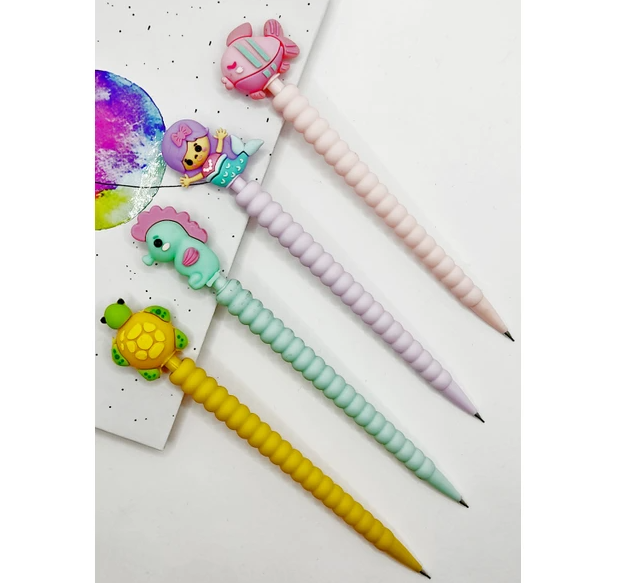 Lapiseira super fofa de fundo do mar; Perfeita para decorar seu material deixando mais fofo durante seu dia a dia; Possui corpo de borracha, para auxiliar na escrita reduzindo a fadiga muscular e o desconforto; Mina 0.7 mm para ter uma escrita fina e bonita;