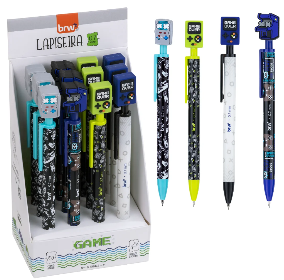 Lapiseira 0.7 Game Brw é a escolha ideal para quem procura um produto de qualidade e versatilidade. Com seu design moderno e divertido, ela é perfeita pra quem deseja deixar seu estojo ou sua coleção de papelaria ainda mais bonitos. Sua escrita é confortável, permitindo um uso fácil em atividades diárias como na escola ou trabalho. Possui uma ponteira temáticade game para deixá-la ainda mais divertida. A Lapiseira possui corpo redondo e decorado!