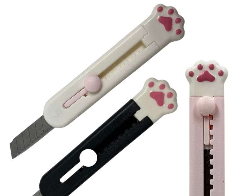 Mini Estilete para Papel com Lâmina Retrátil em Formato Patinha de Gato